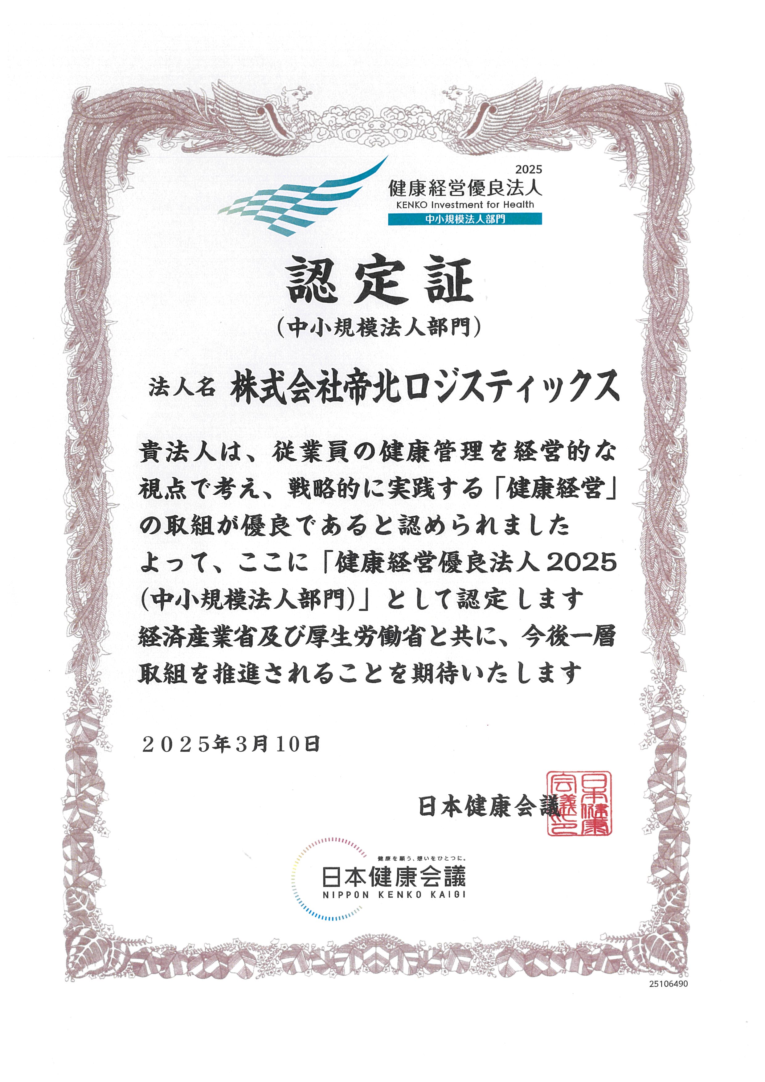 - 「健康経営優良法人(中小規模法人部門)」に認定されています